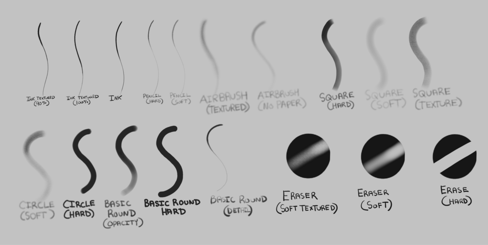 Here are some custom brushes that I made for TvPaint. These were made with both illustrating and animating in mind. There are (3) Erasers, (3) Ink Brushes, (2) Pencil Brushes, (2) Airbrushes, and (8) Paint Brushes. They range from textured brushes/erasers to untextured.
